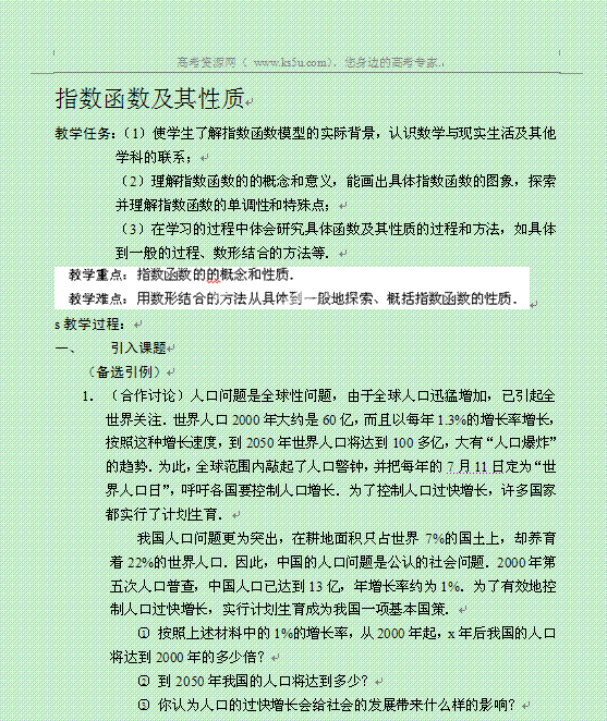 百度:湖南师范大学附属中学高一数学教案:2.1.2指数函数及其性质