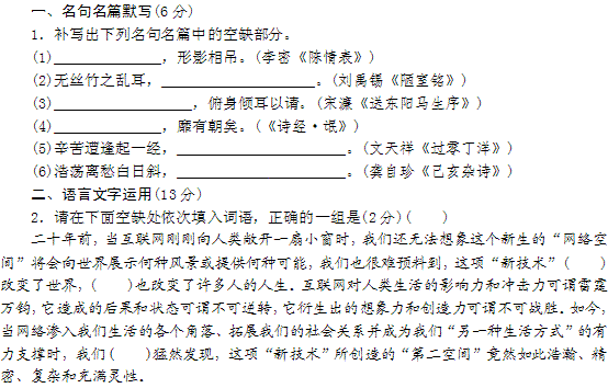 有道:《复习方案》2014届高三语文二轮专题复习(新课标-福建)训练:默写 文化经典阅读 实用类文本阅读35 Word版含答案