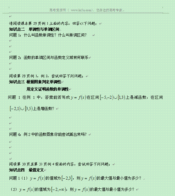 百度:湖北省洪湖市贺龙高级中学高一数学学案:1.3.1函数的单调性 必修一