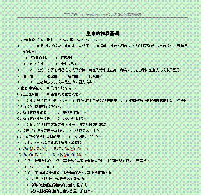 谷歌:2014年高考生物复习核心突破教案:生命的物质基础