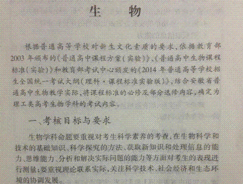谷歌:安徽省2014年高考考试说明 生物 扫描版