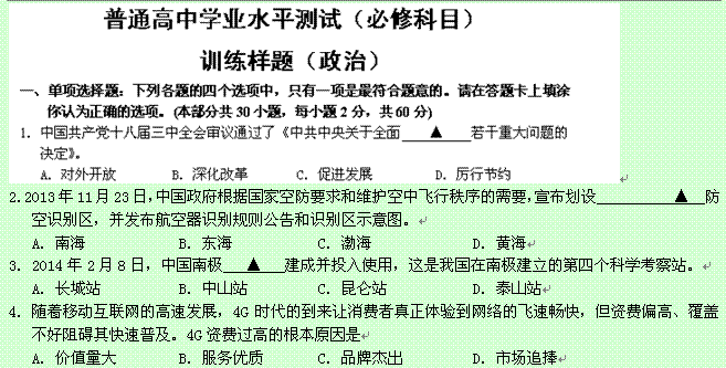 百度:2014年江苏省南京市普通高中学业水平测试(必修科目)政治试题 Word版含答案