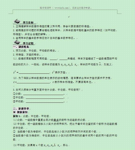 百度:四川省岳池县第一中学高中数学学案:2.2.2用样本的数字特征估计总体的数字特征 必修三