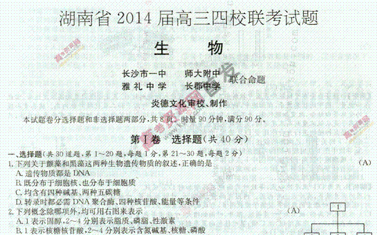 百度:《KS5U首发》湖南省四大名校2014届高三下学期联考试题 生物 扫描版含答案