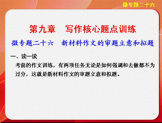 有道:《多媒体数字教学工具包(增分秘籍)》(皖·教师专用)2014届高考语文二轮复习 微专题核心题点训练《配套课件》第九章 写作核心题点训练