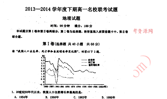 百度:河南省周口市名校2013-2014学年高一3月联考地理试题 扫描版含答案