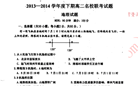 百度:河南省周口市名校2013-2014学年高二3月联考地理试题 扫描版含答案