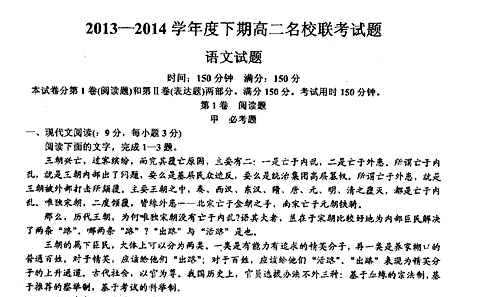 有道:河南省周口市名校2013-2014学年高二3月联考语文试题 扫描版含答案