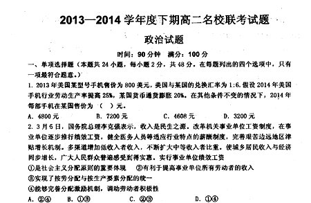 百度:河南省周口市名校2013-2014学年高二3月联考政治试题 扫描版含答案