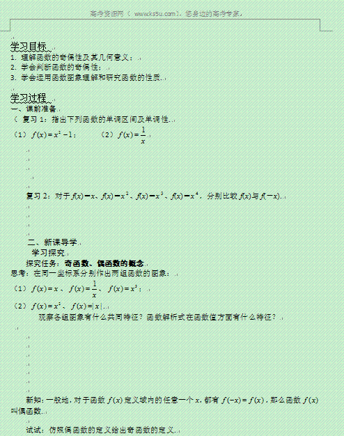 谷歌:河南省沁阳市第一中学2013-2014学年高一数学导学案:2.5.2奇偶性