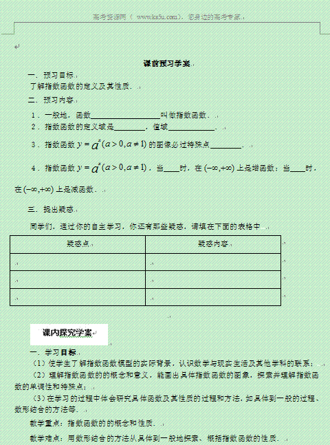 谷歌:河南省沁阳市第一中学2013-2014学年高一数学导学案:3.3.1指数函数的概念
