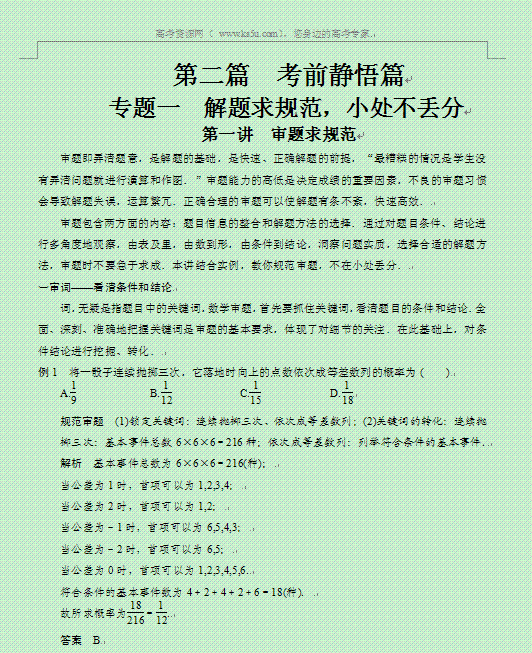 谷歌:步步高《考前三个月·四川专用》2014年高考数学(理)二轮复习配套学案:第二部分 考前静悟篇 专题一 第一讲