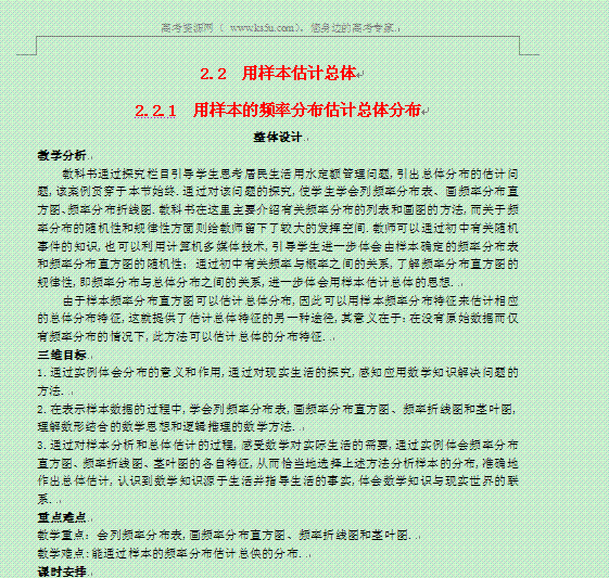 谷歌:2013-2014学年高中数学教案:2.2.1 用样本的频率分布估计总体分布 新人教A版必修3
