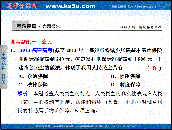 百度:2014届高考政治二轮复习课件(新课标通用):必修2 专题五 我国的公民与政府