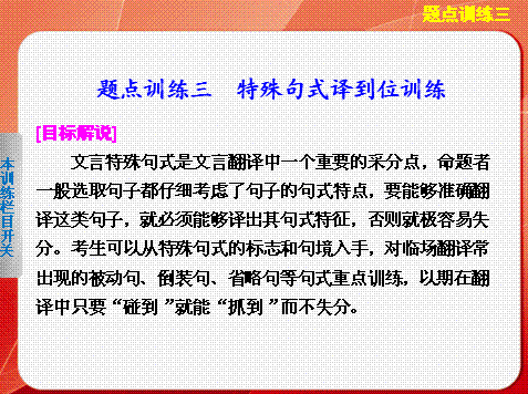 有道:《考前三个月·湖南专用》2014届高考语文二轮课件:第1章 文言文阅读 题点训练3