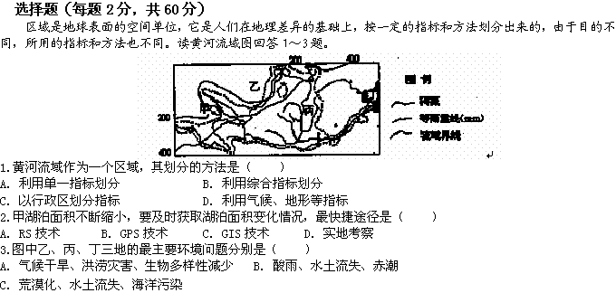 百度:山东省济宁市微山一中2013-2014学年高二寒假作业检测地理试题 Word版含答案