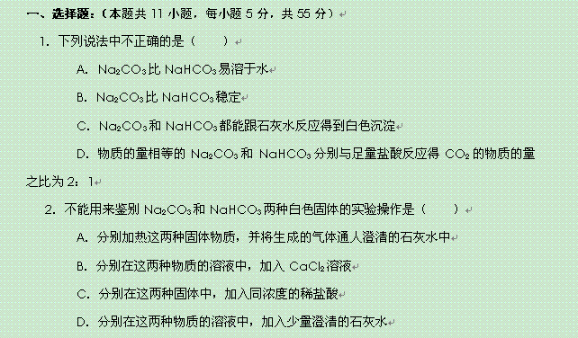 百度:山西省永济市第三高级中学高中化学必修一练习:第三章 金属及其化合物 (B)第二节 几种重要的金属化合物 Word版含解析