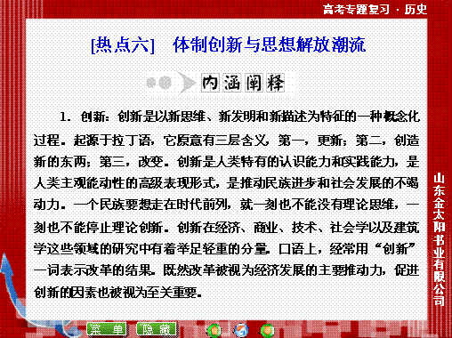 有道:2014届高考历史二轮复习课件《知识整合+思维拓展+深化提升》:热点六 体制创新与思想解放潮流(共81张ppt)