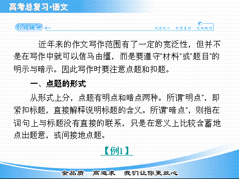 谷歌:2015届高考语文基础知识总复习精讲课件:专题二十八 学会点题(课件+素材,4份)