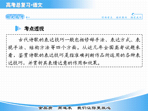 有道:2015届高考语文基础知识总复习精讲课件:专题十六 鉴赏古代诗歌的表达技巧(81张PPT)