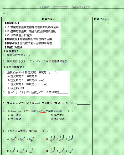 百度:山东省泰安市肥城市第三中学高一数学学案:指数函数及其性质(二) 必修一