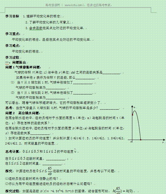 有道:青海省青海师范大学附属第二中学高中数学(理)导学案:1.1.1变化率问题 选修二