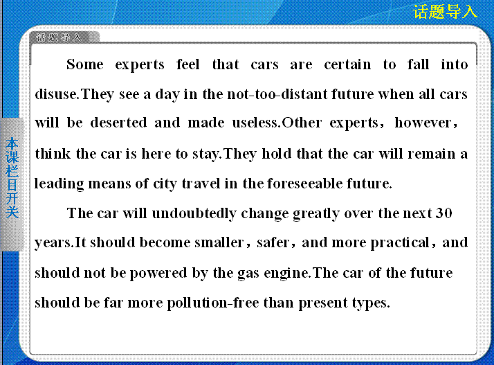 百度:2013-2014高中英语(外研版必修4)配套课件:Module 2 Traffic Jam Period 1 Warmup and Reading