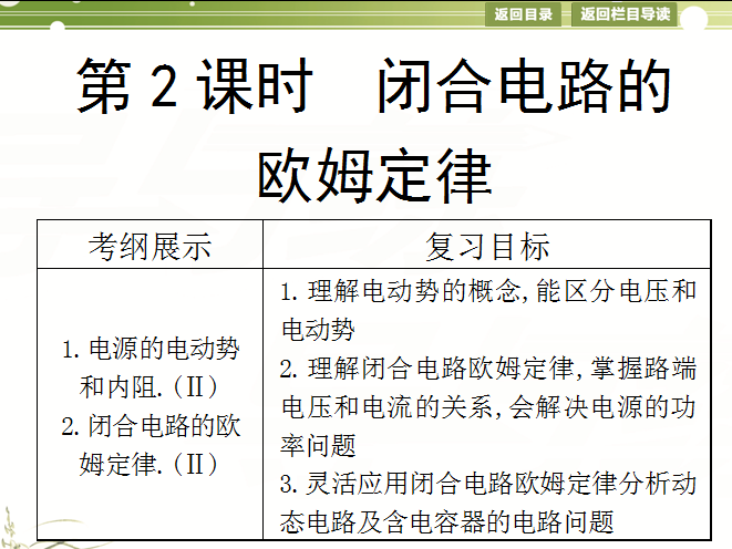 百度:2015高考物理总复习大一轮(浙江专用)配套精讲课件:第7章 第2课时 闭合电路的欧姆定律