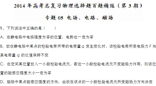 有道:专题05 电场、电路、磁场(第03期)-2014年高考总复习物理选择题百题精练 Word版含解析