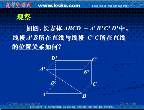 谷歌:湖南省长沙市长郡卫星远程学校2013-2014学年高一下学期数学课件:《空间中直线与直线之间的位置关系》1