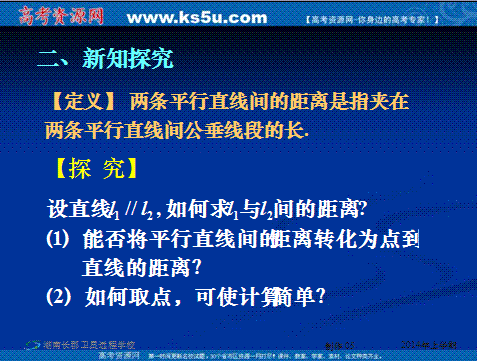 有道:湖南省长沙市长郡卫星远程学校2013-2014学年高一下学期数学课件:《两条平行直线间的距离》
