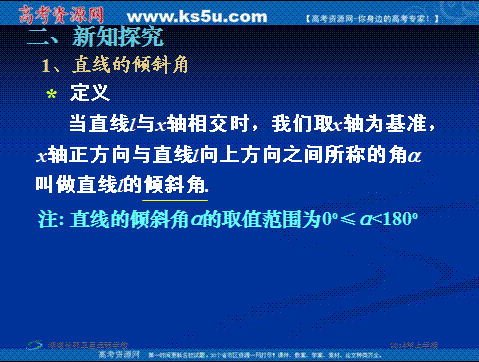 有道:湖南省长沙市长郡卫星远程学校2013-2014学年高一下学期数学课件:《倾斜角与斜率》