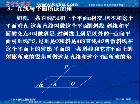 有道:湖南省长沙市长郡卫星远程学校2013-2014学年高一下学期数学课件:《直线与平面垂直的判定》