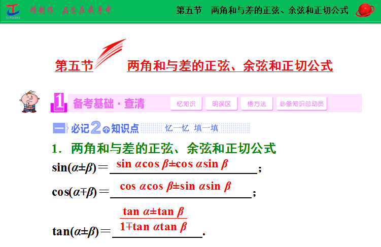 谷歌:2015届高考人教版数学(理)大一轮复习精讲课件:第3章 第5节 两角和与差的正弦、余弦和正切公式