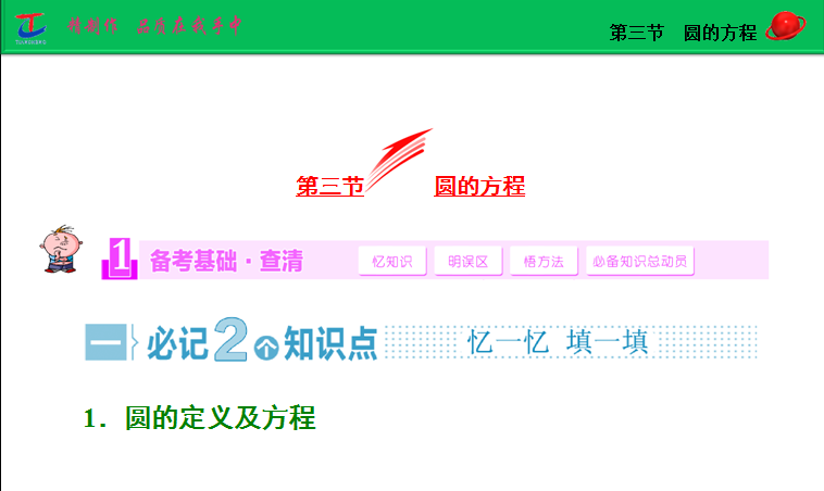 百度:2015届高考人教版数学(理)大一轮复习精讲课件:第8章 第3节 圆的方程