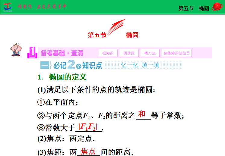 百度:2015届高考人教版数学(理)大一轮复习精讲课件:第8章 第5节 椭圆