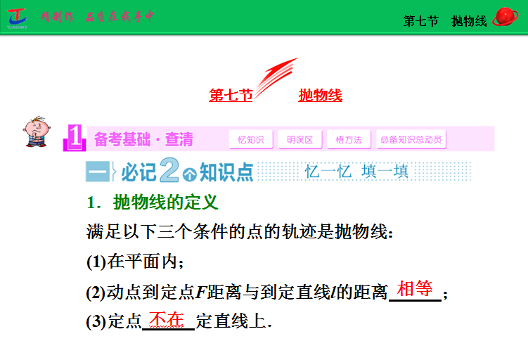 百度:2015届高考人教版数学(理)大一轮复习精讲课件:第8章 第7节 抛物线