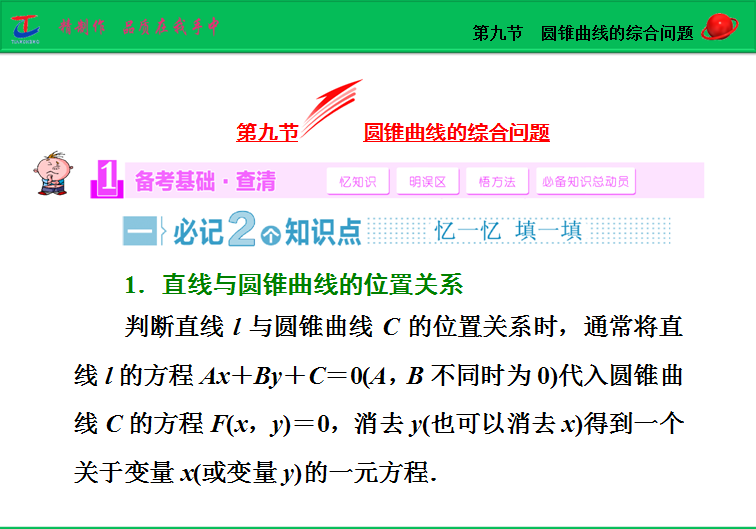 百度:2015届高考人教版数学(理)大一轮复习精讲课件:第8章 第9节 第1课时 直线与圆锥曲线的位置关系