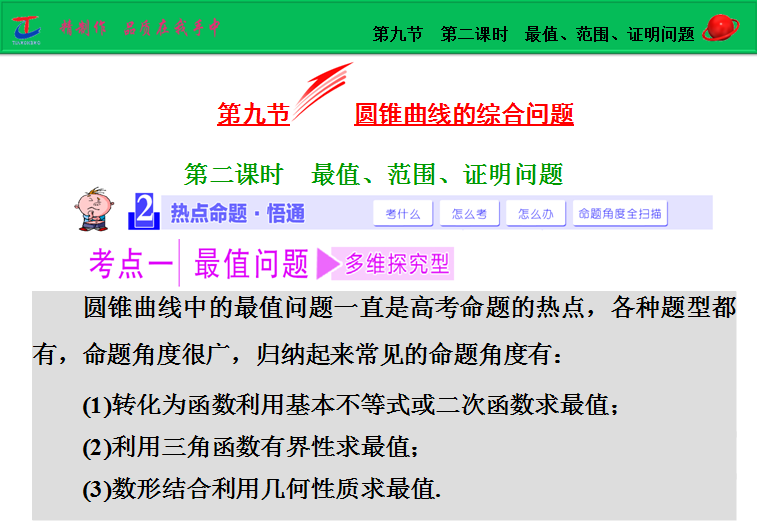 百度:2015届高考人教版数学(理)大一轮复习精讲课件:第8章 第9节 第2课时 最值、范围、证明问题