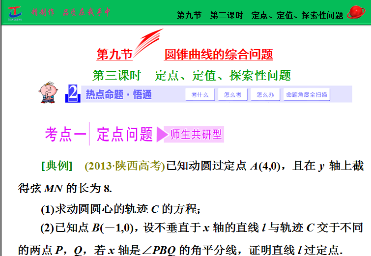 谷歌:2015届高考人教版数学(理)大一轮复习精讲课件:第8章 第9节 第3课时 定点、定值、探索性问题