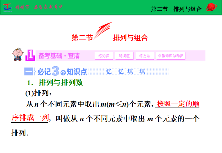 百度:2015届高考人教版数学(理)大一轮复习精讲课件:第9章 第2节 排列与组合