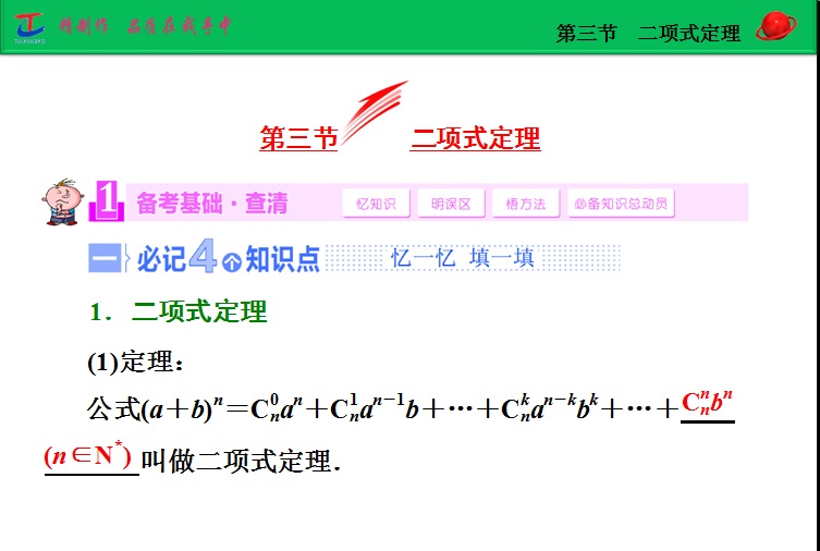 百度:2015届高考人教版数学(理)大一轮复习精讲课件:第9章 第3节 二项式定理