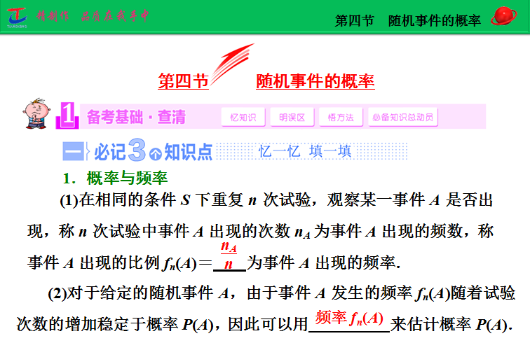 有道:2015届高考人教版数学(理)大一轮复习精讲课件:第9章 第4节 随机事件的概率