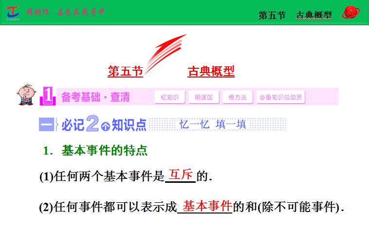 百度:2015届高考人教版数学(理)大一轮复习精讲课件:第9章 第5节 古典概型