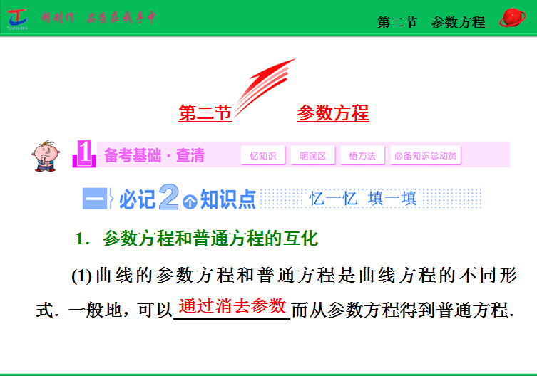 谷歌:2015届高考人教版数学(理)大一轮复习精讲课件:选修4-4 第2节 参数方程