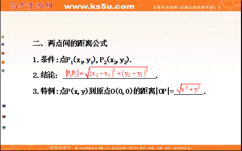 百度:《全程复习方略》2013-2014学年高中数学(人教A版必修2)教师用书配套课件3.3.1&3.3.2 两条直线的交点坐标、两点间的距离(共49张PPT)