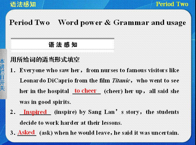 有道:2013-2014学年高二英语(牛津译林版选修6)同步课件:Unit 2 What is happiness to you Period 2