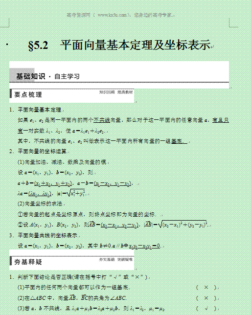 谷歌:《步步高》2015年高考数学总复习(人教A版,理科)配套《配套Word版文档》教案:第五章 平面向量 5.2