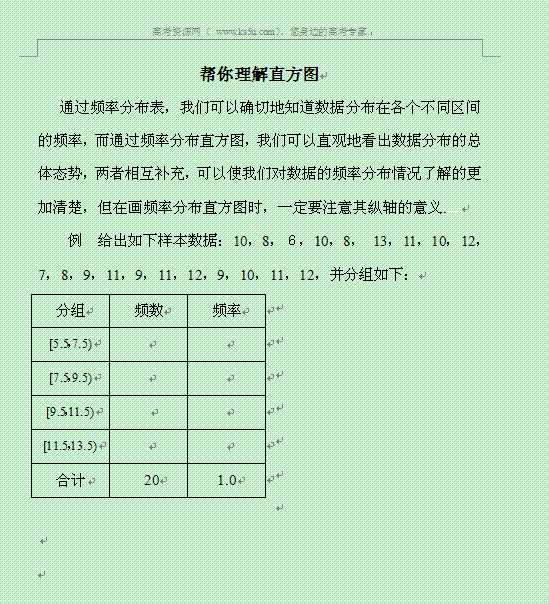 有道:2014年高考数学解题方法专题复习学案:帮你理解直方图