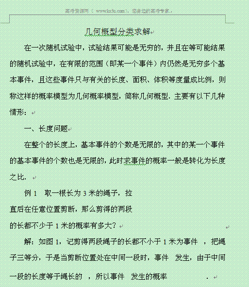 谷歌:2014年高考数学解题方法专题复习学案:几何概型分类求解
